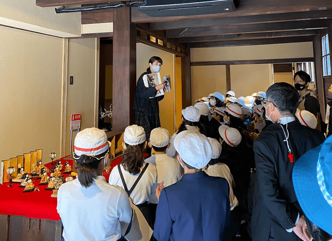 「碓井邸は、白壁のまちなみの中にあって、「ねずみ漆喰」と呼ばれる薄いグレーの壁が特徴的です。他の建物は白の漆喰塗りなのに、碓井邸だけは唯一ねずみ漆喰です。理由は諸説ありますが、富の象徴でもあった漆喰塗りは、そのままの白色だと煌びやかすぎるので、目立ちすぎないようにする意味合いでねずみ漆喰が用いられたと伺ってます」