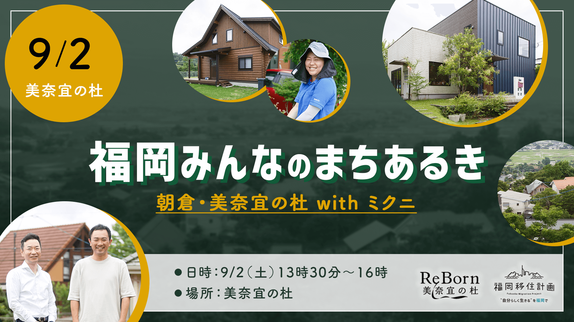 | (プロジェクト概要) 福岡県朝倉市にある多世代共生型の住宅地「美奈宜の杜」を持続的且つより魅力的な住宅地にしていくための取り組みとして、宅地の販売事業者である株式会社ミクニと福岡移住計画を運営する株式会社SALTによる共同プロジェクト。理想の住まいづくりを実現させたいファミリー世帯や、家へのこだわりを持つ方々に自分らしい暮らしを実現いただける住宅地として、様々な取り組みを計画します。 |