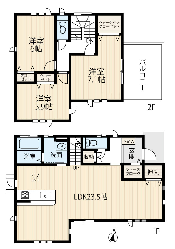 6帖と5.9帖の洋室は、子ども部屋や書斎、趣味の部屋など、用途を選ばず使える広さ。