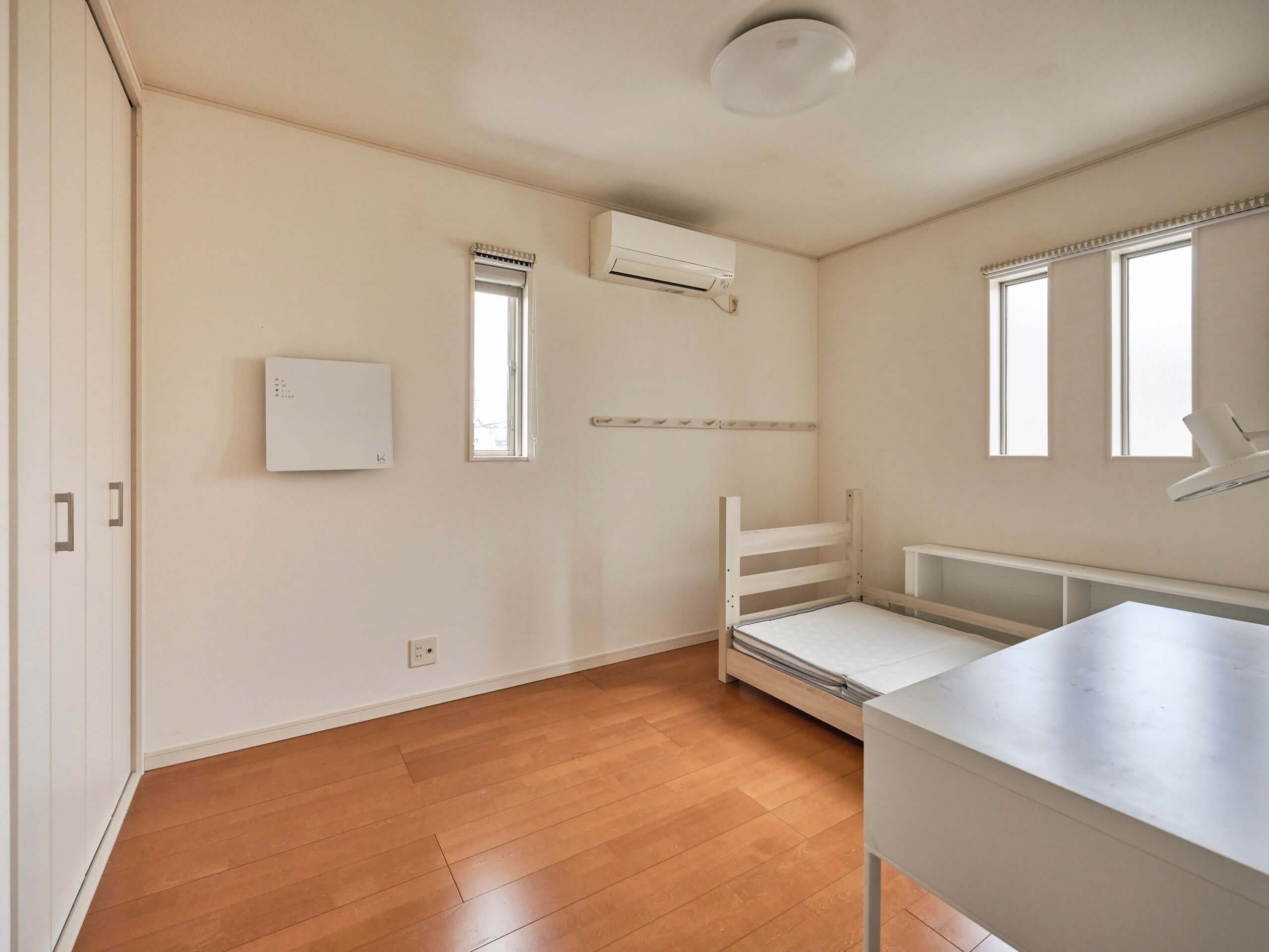 ベッドや収納家具を配置しても圧迫感がなく、落ち着いて過ごせる空間です。日々の疲れをリセットする場所として、静かで安心感のある一室だと感じます。