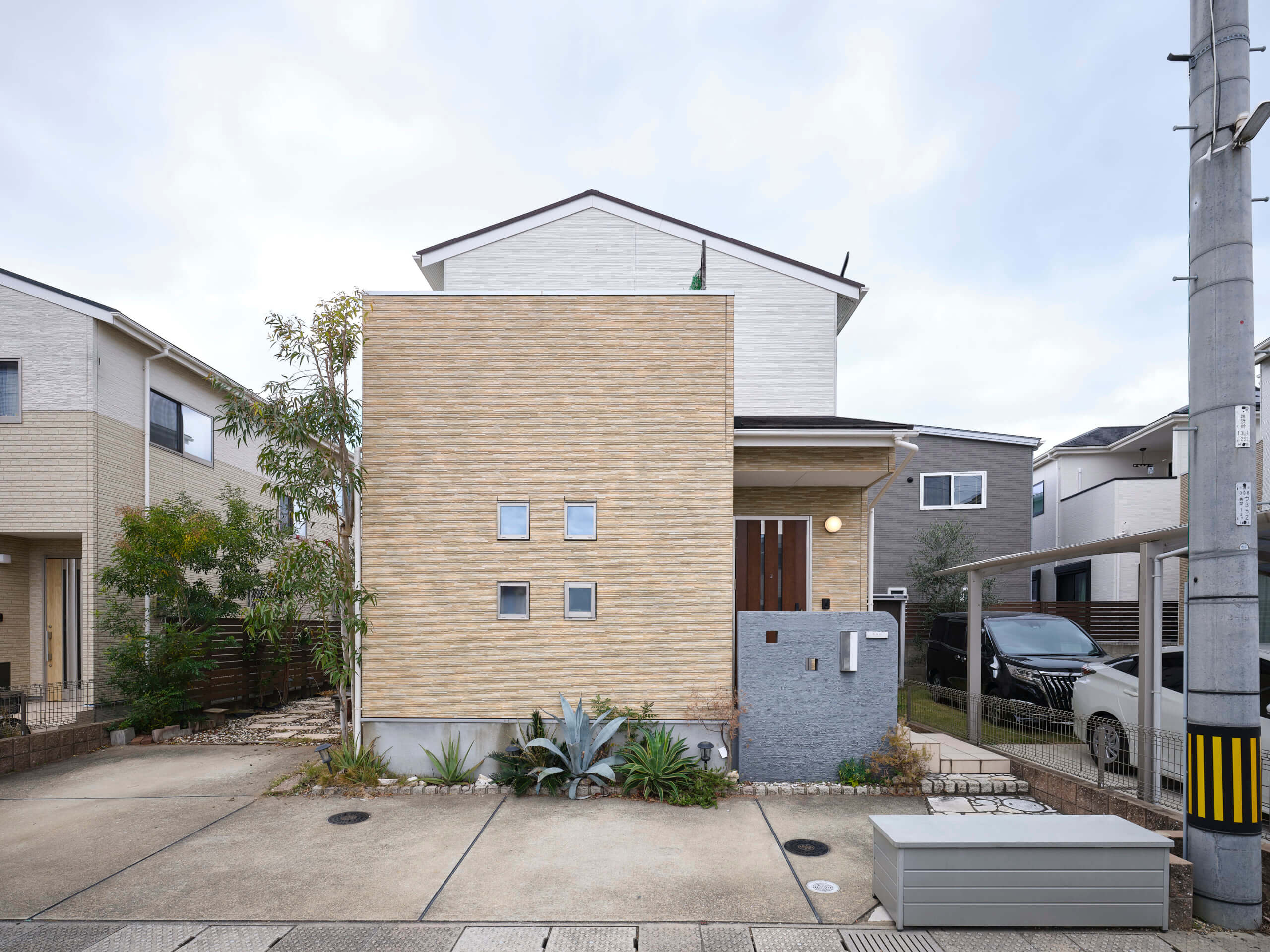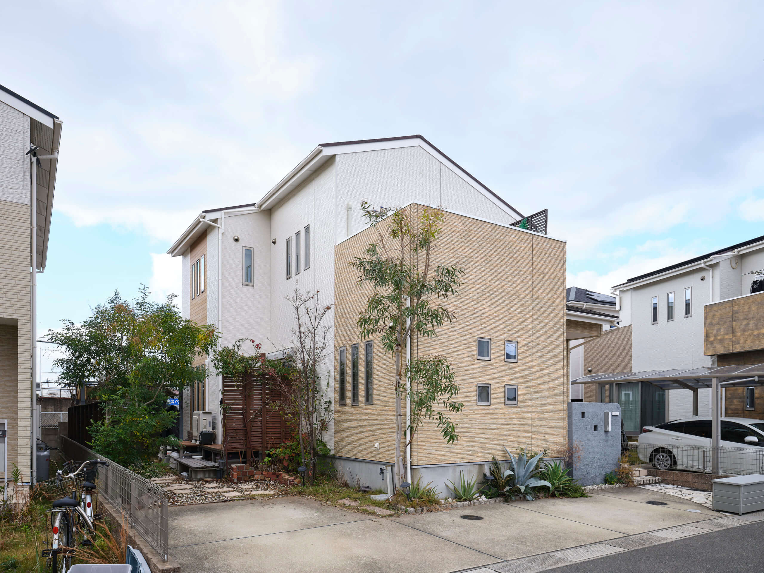 和白6丁目の住宅地に建つこの家は、周囲の街並みに自然と溶け込む、落ち着いた佇まいが印象的です。