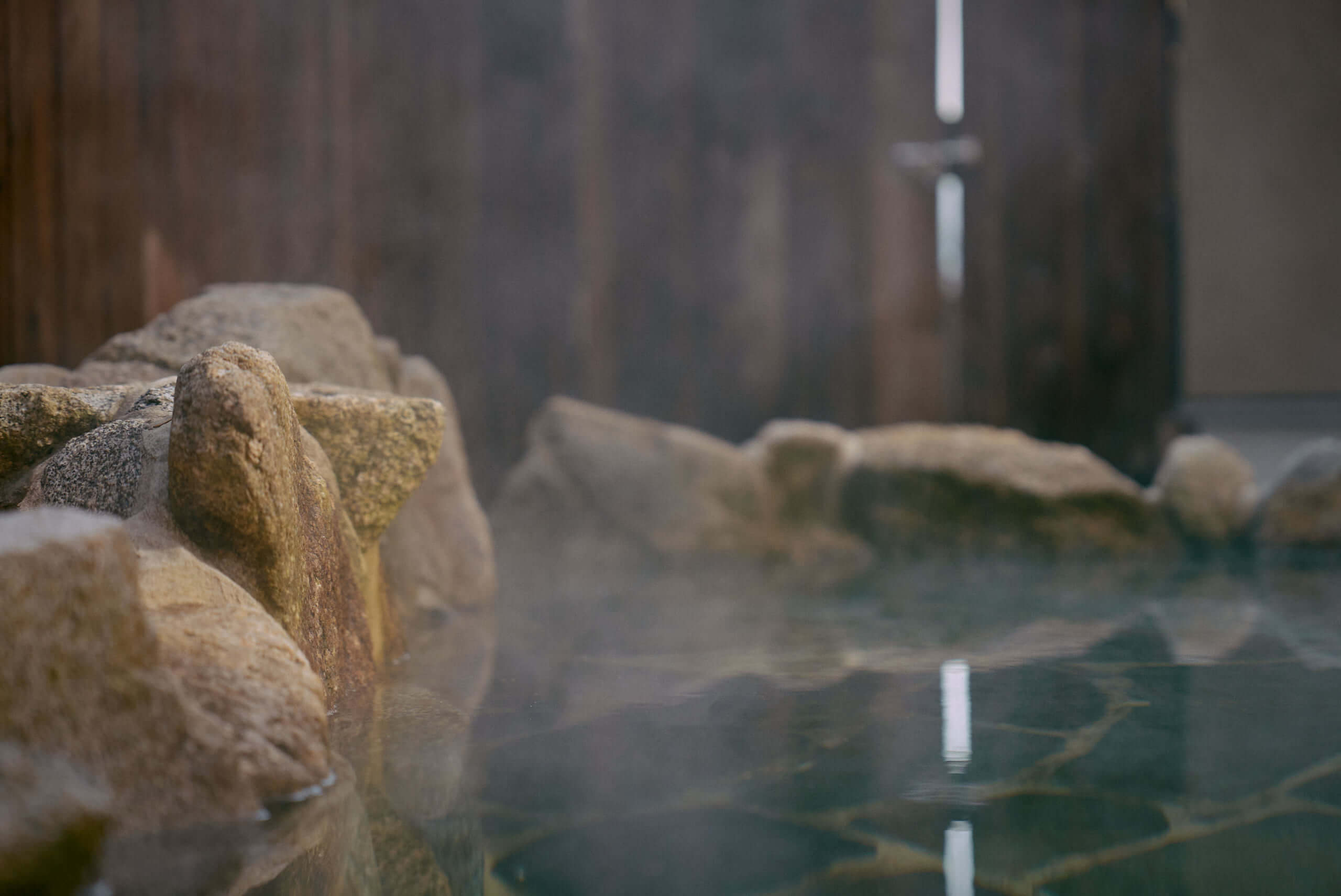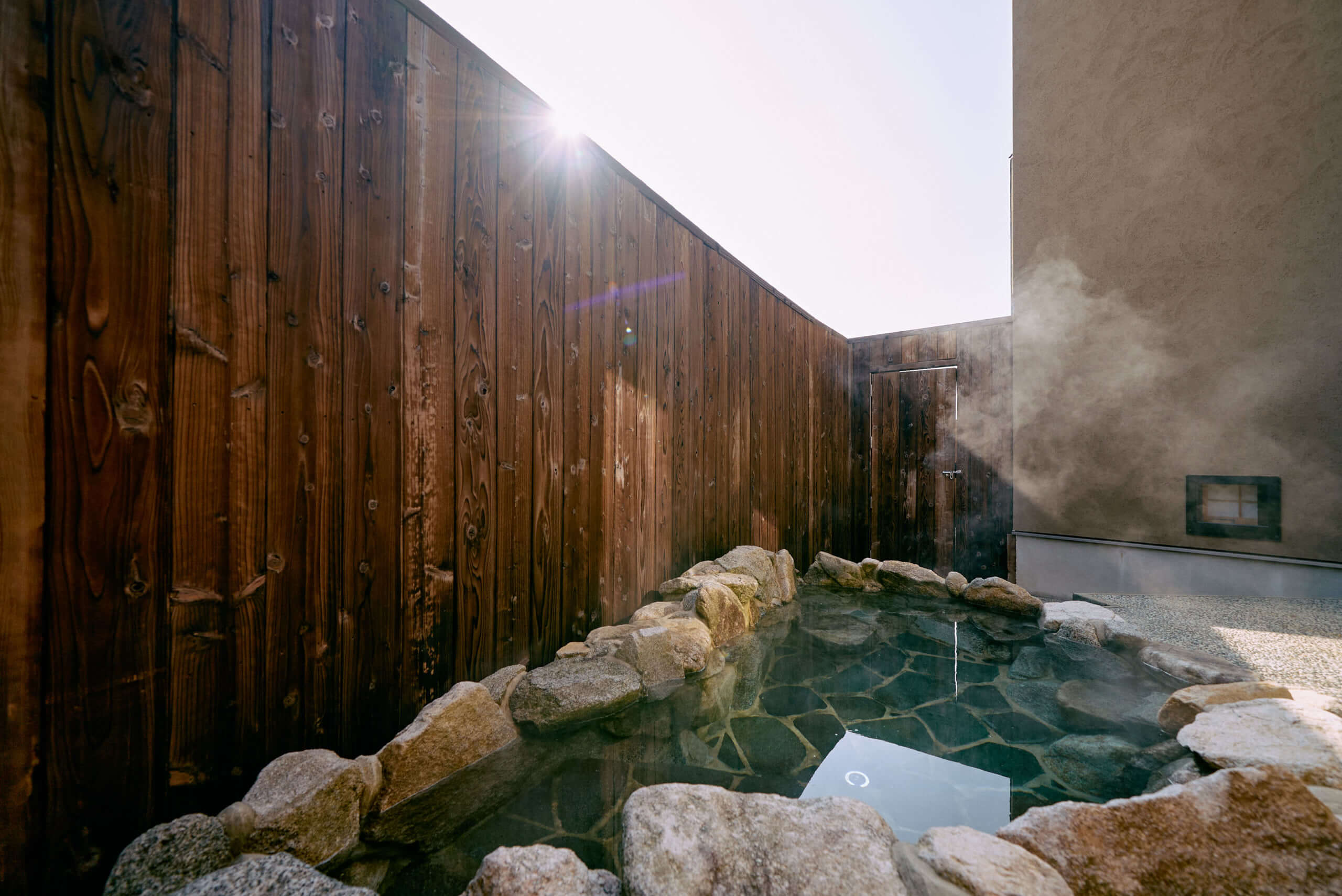 日常に高級温泉宿の静寂を。岩造りの露天風呂と「WABURO」の内風呂